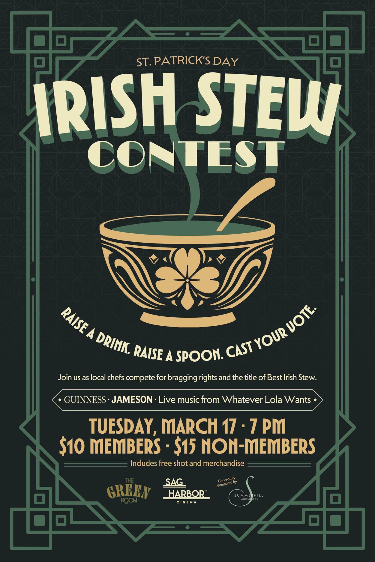 Join us as local chefs compete for bragging rights and the title of Best Irish Stew.